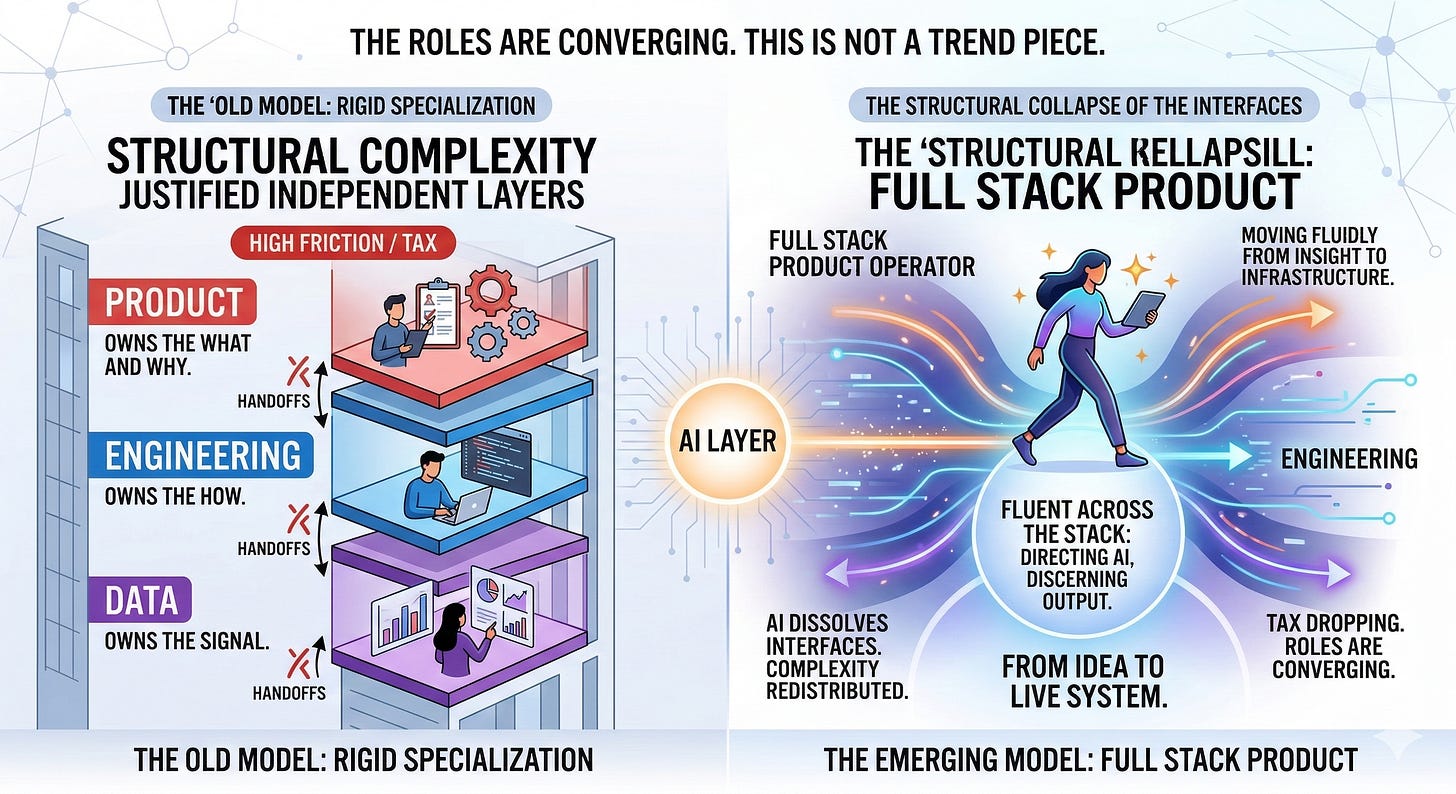 Let me state this plainly: the boundaries between Product, Engineering, and Data are structurally collapsing — not because any one discipline is winning, but because AI is dissolving the interfaces between them.