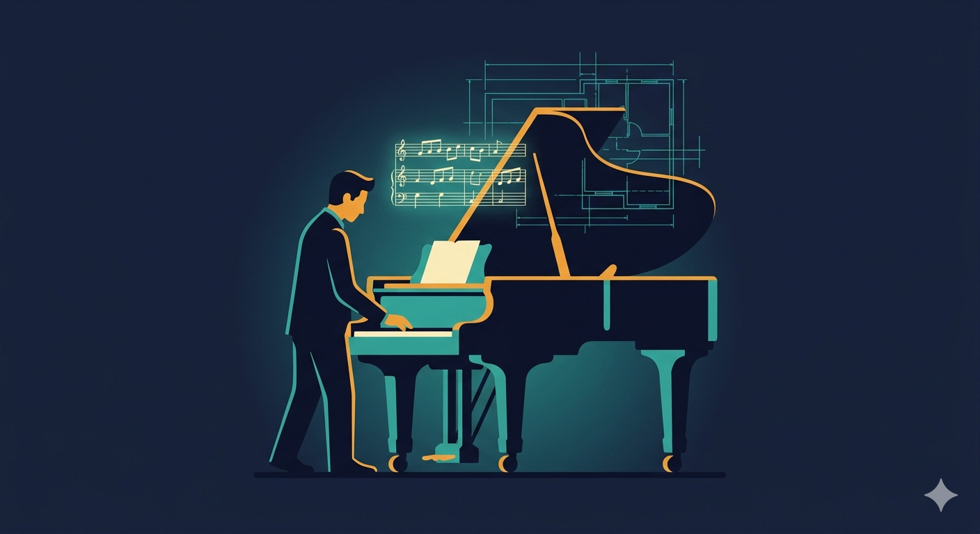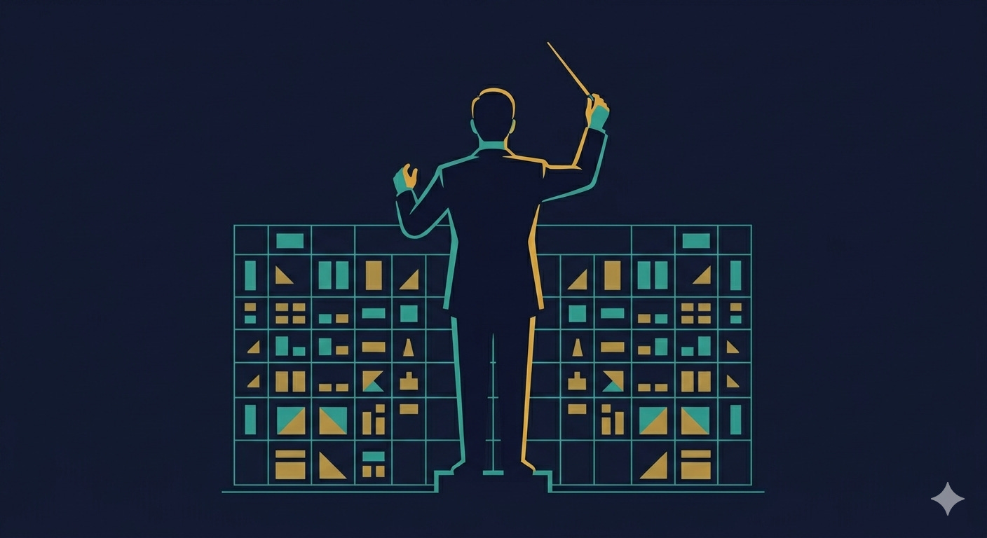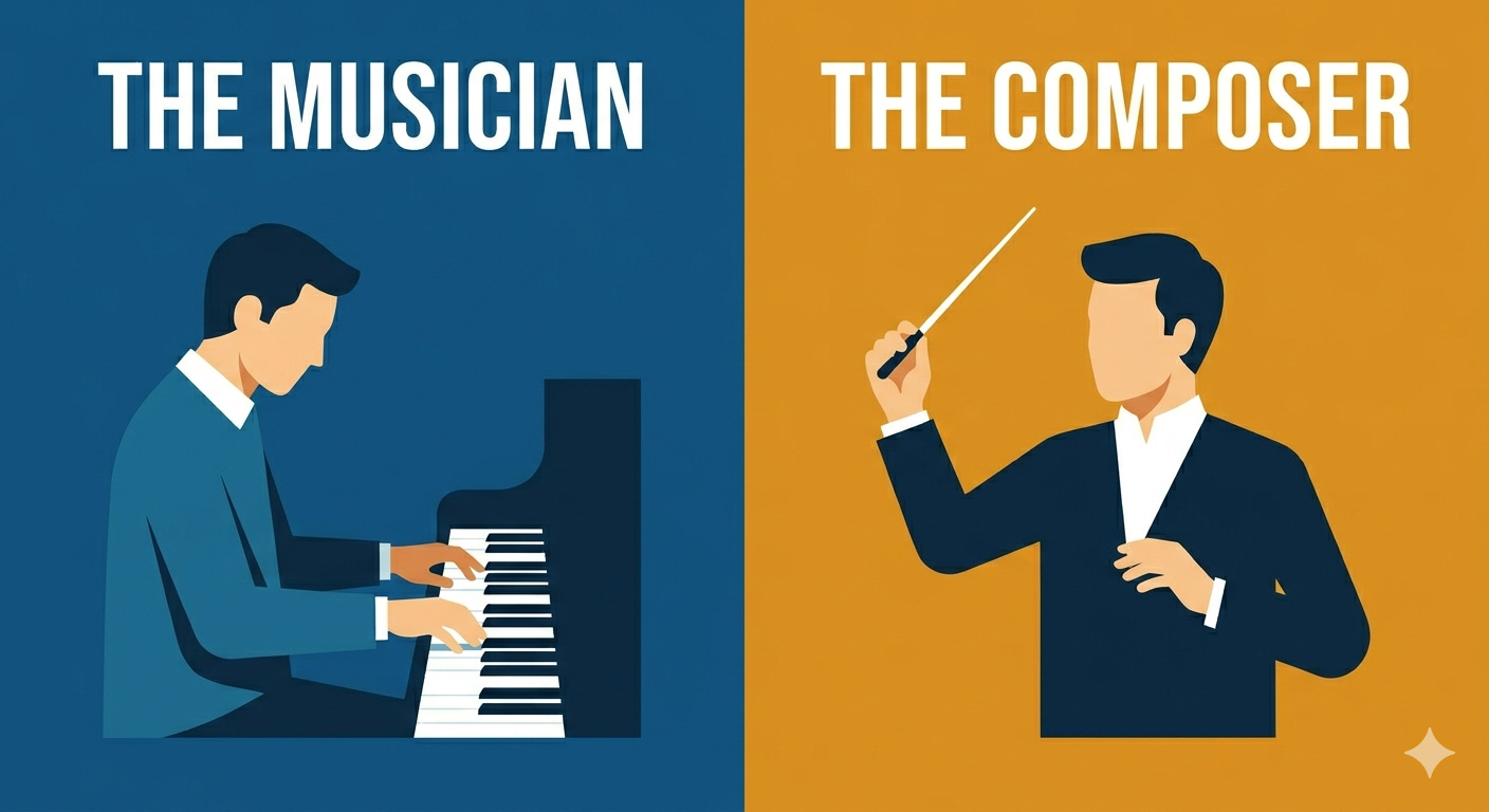 A composer doesn’t play every instrument. They hold the structure. They understand what the strings can carry and where the brass will overwhelm everything else. They make decisions about what the piece is trying to accomplish — not by executing the notes, but by shaping the intent behind them.